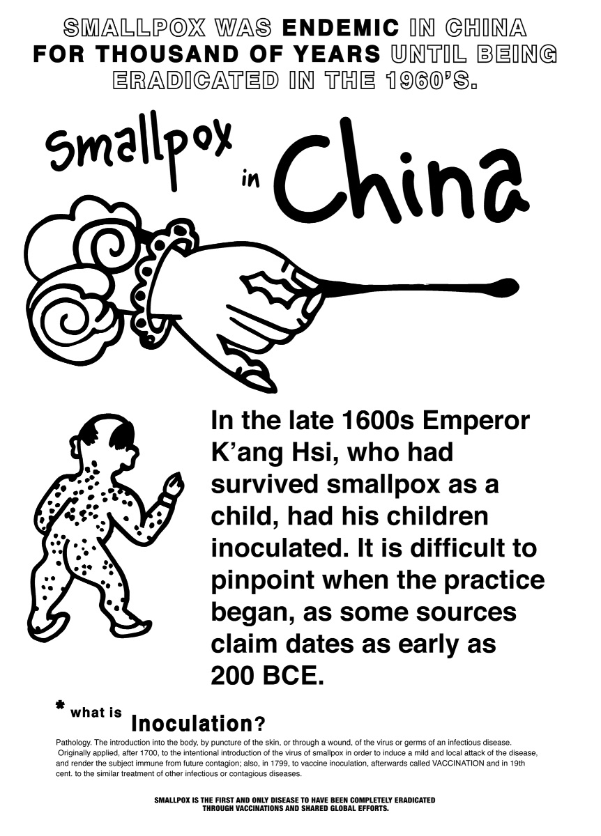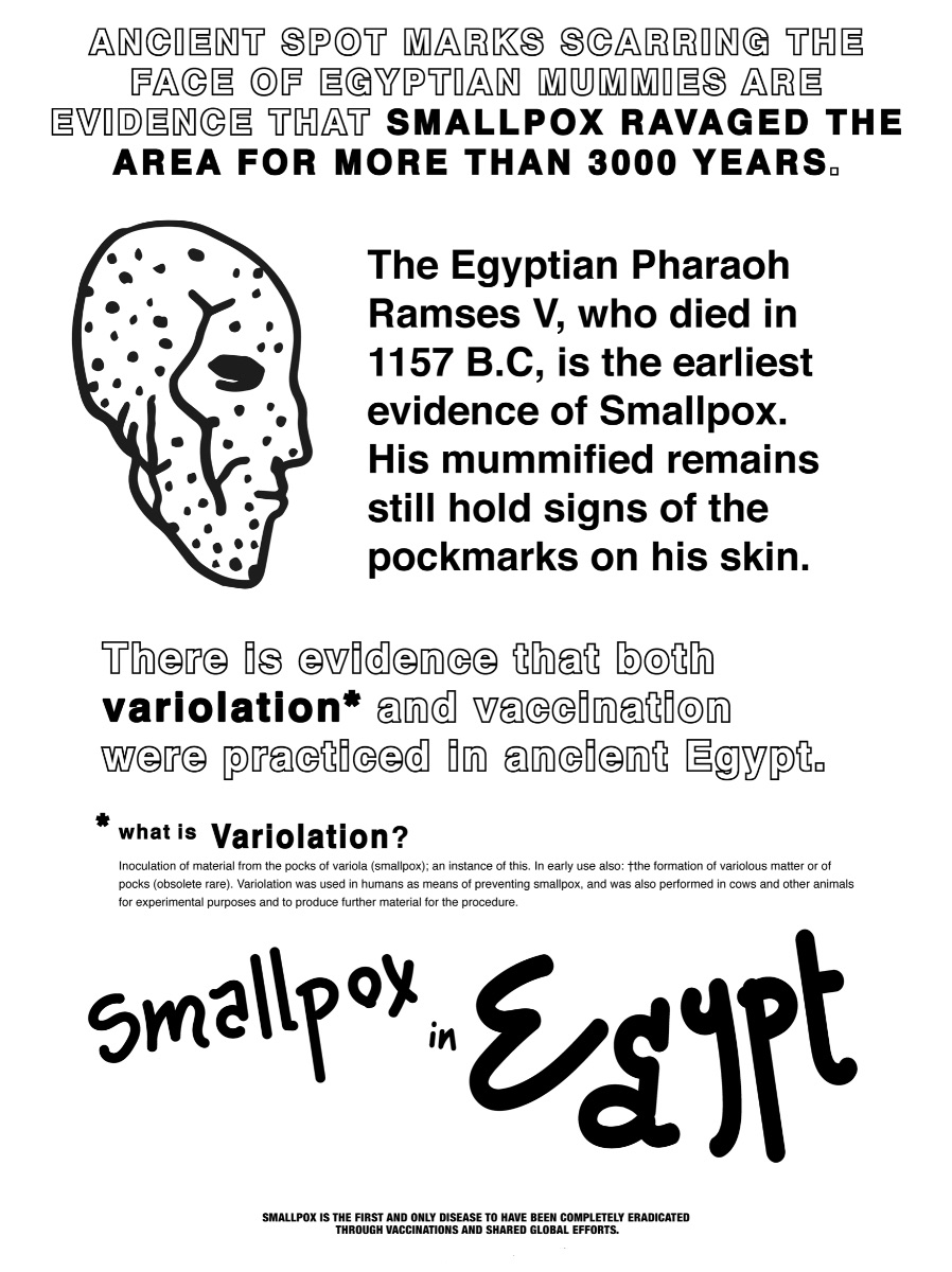 Imry sought to find a coherent graphic language that can assemble the different representations of Smallpox and took inspiration from methods as such as Storytelling and Advertisements to try and create an informative, graphic experience.